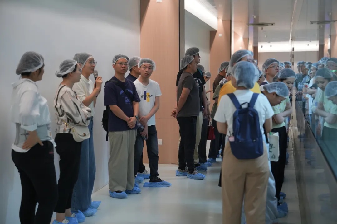 活動(dòng)伊始,大家穿戴好一次性帽子和鞋套進(jìn)入了車間,一股淡淡的甜香撲鼻而來,那是糕點(diǎn)烘焙后散發(fā)出的誘人香氣。大家沿著整潔的生產(chǎn)線參觀,看到工人們身著統(tǒng)一的工作服,手法熟練地進(jìn)行著各道工序。通過生產(chǎn)負(fù)責(zé)人的講解,大家了解了合和圓緣工廠的材料使用、制作工藝、冷鏈運(yùn)輸?shù)雀髁鞒痰墓ぷ饕?guī)范和要求,也見微知著地感受到了合和圓緣細(xì)節(jié)體現(xiàn)的匠人追求和專業(yè)素養(yǎng)。