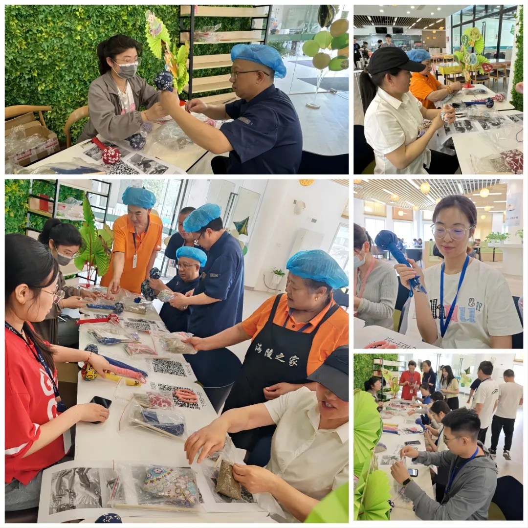 “端午滾滾樂”:食堂入口處,鋪上了一塊兩米長的地毯,裝點(diǎn)著可愛的小粽子,大小相同的空白窗格像階梯一樣列隊(duì)在地毯中央。員工們紛紛加入游戲,站在指定位置,將飲料罐滾動至相應(yīng)窗格中,獲得驚喜獎品;未能獲獎的員工,也都領(lǐng)取到端午節(jié)五色繩。海陵工會為員工們準(zhǔn)備了端午大禮包、補(bǔ)水儀、端午掛飾、零錢包等眾多獎品,活動現(xiàn)場熱鬧非凡,員工們積極參與游戲,共祝端午安康。