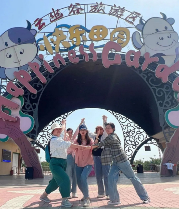 在景區(qū)入口拍攝了集體合影后,大家在隊(duì)長(zhǎng)們的帶領(lǐng)下,迫不及待地開始參與第一項(xiàng)任務(wù)——小組創(chuàng)意合影。每個(gè)小組都發(fā)揮豐富的想象力,拍出了創(chuàng)意感滿滿的照片。