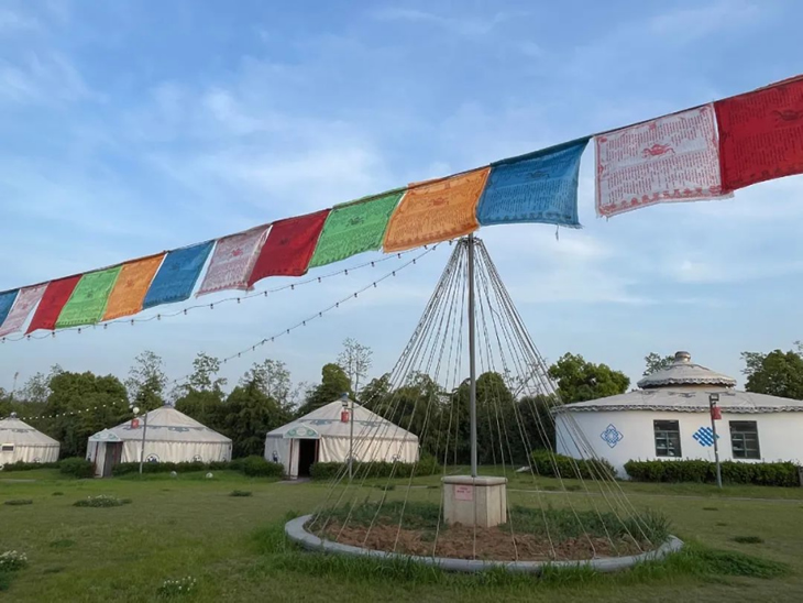 結(jié)束頒獎(jiǎng)后,一行人談笑風(fēng)生地步行前往“蒙古大營(yíng)”,走進(jìn)用餐區(qū),一個(gè)個(gè)或大或小的蒙古包映入眼簾,落日余暉下的風(fēng)景讓人深感民族特色。大家圍坐在桌旁,享用美味晚餐,幸運(yùn)的我們還觀賞到蒙古族歌曲、舞蹈、和馬頭琴的驚喜表演。