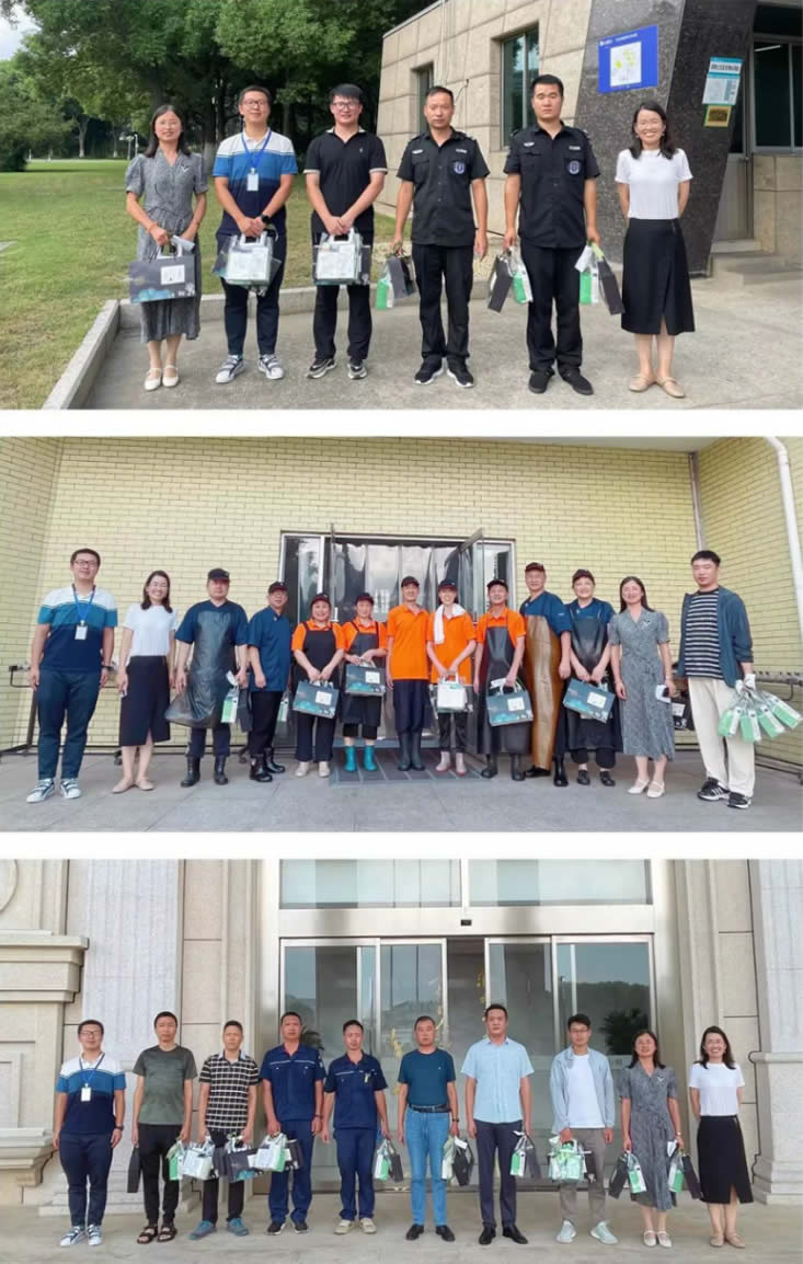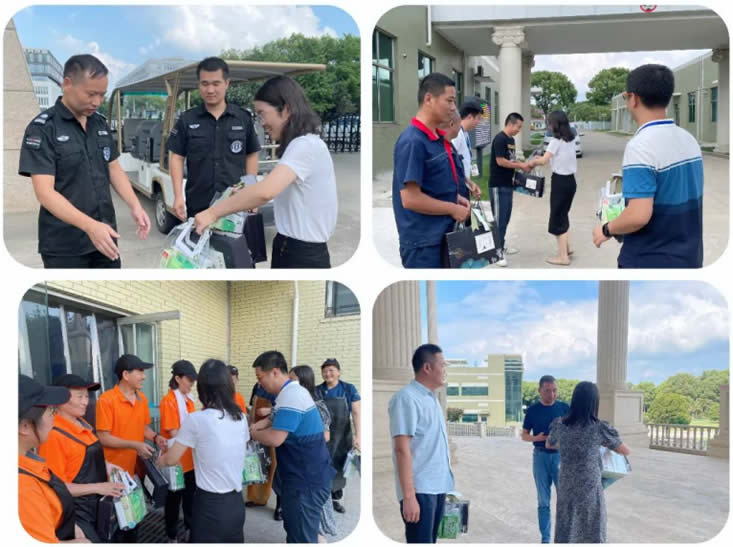 南京海陵黨支部書記李靜、南京海陵工會(huì)主席徐秋霞、南京海陵辦公室主任車越慰問奮斗在一線的員工,為他們送上了防暑禮包及養(yǎng)生茶禮盒。